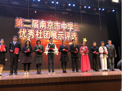 2018年12月23日下午,南京市第二届中学生优秀社团展示评选活动在南京师范大学附属中学举行,本次活动由南京市教育局中学教育处组织,经过市级审核,选出45个社团入围南京市中学生优秀社团评选,我校手绘社和化学生活社在吕燕书记带队下,在6分钟社团成果汇报和2分钟评委提问环节均表现出色,双双荣获“南京市十佳社团(高中组)”称号。